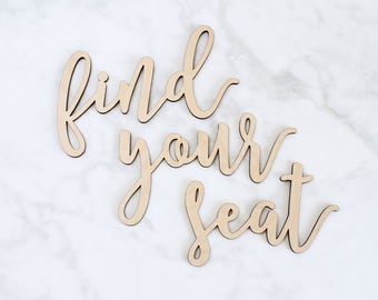 find your seat wedding sign wood